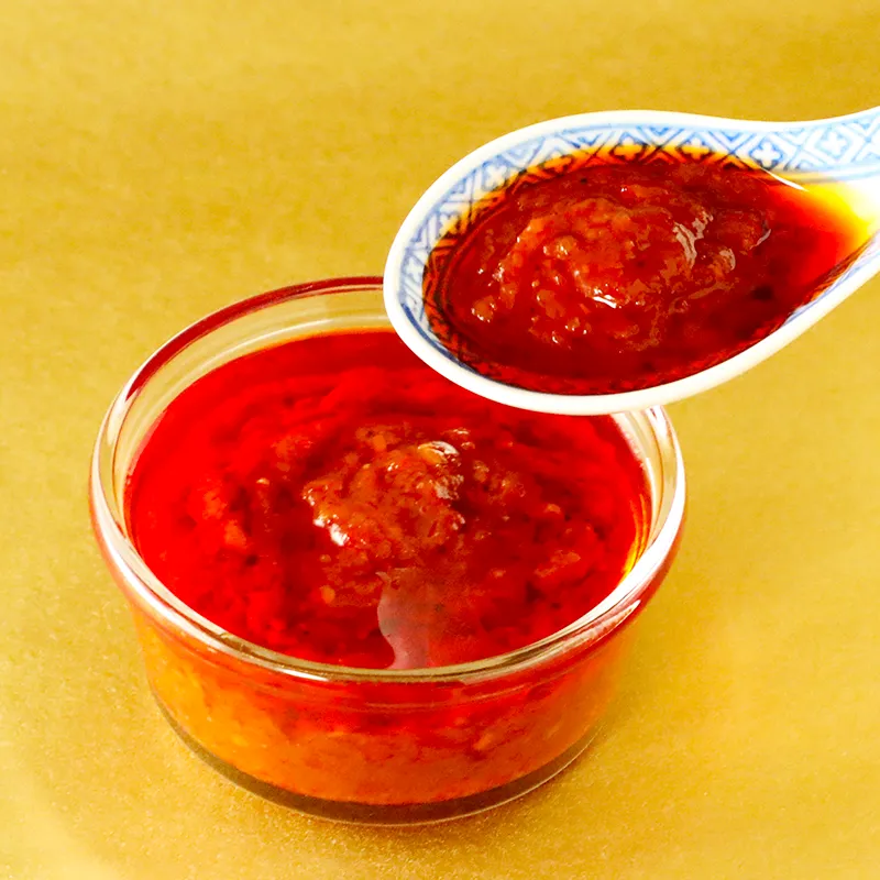 原材料名 なたね油(国内製造)、塩漬唐辛子、中華調味料(チリソース)、玉ねぎ、砂糖、豆板醤、ニンニクペースト、素干桜えび/調味料(アミノ酸等)、増粘剤(加工澱粉、キサンタンガム)、酸味料、クエン酸、(一部にえび・小麦・大豆を含む)